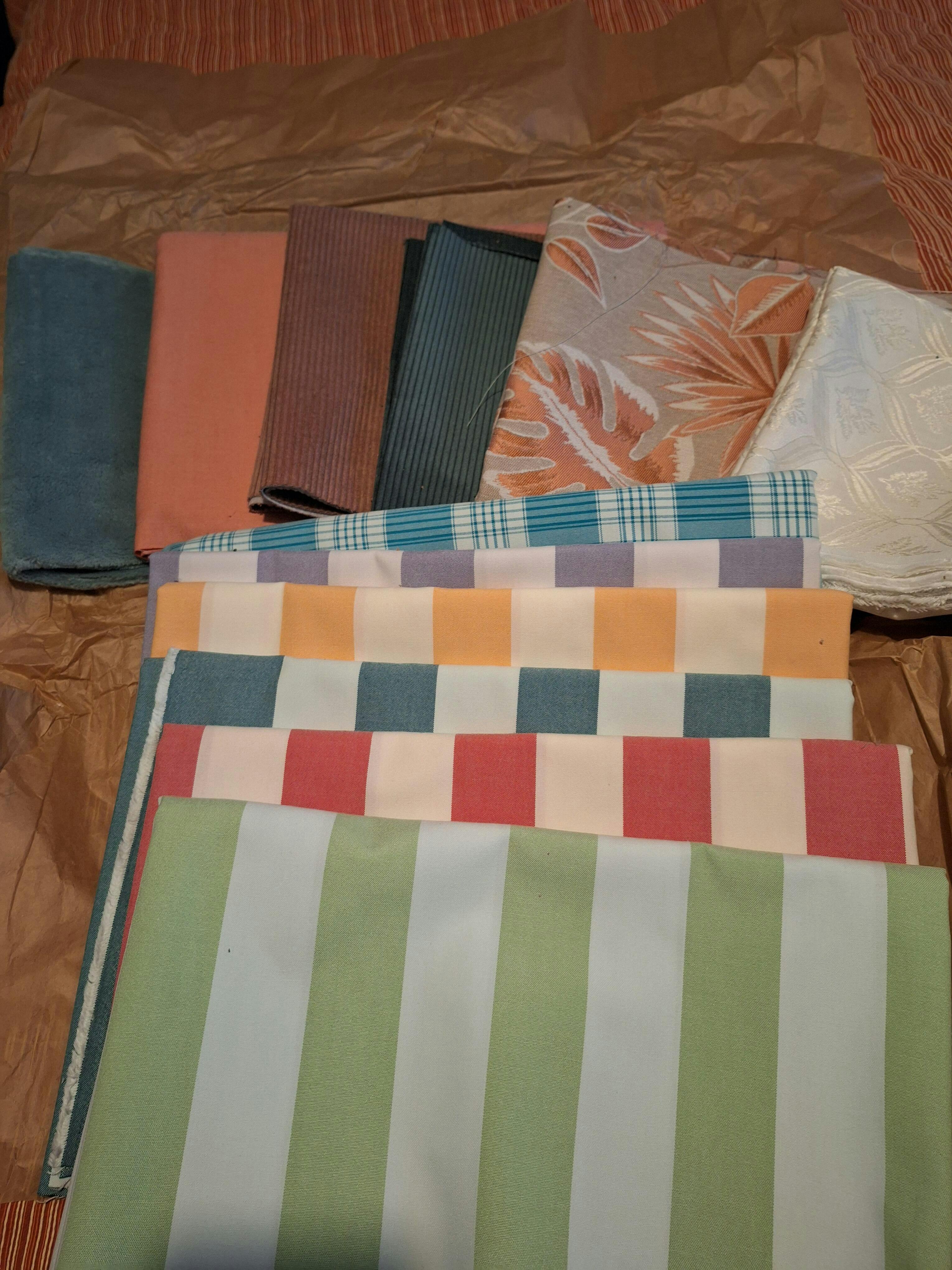 Tessuti di ottima qualità, colori corrispondenti in modo impeccabile a quelli visti on line, taglio della stoffa dritto.